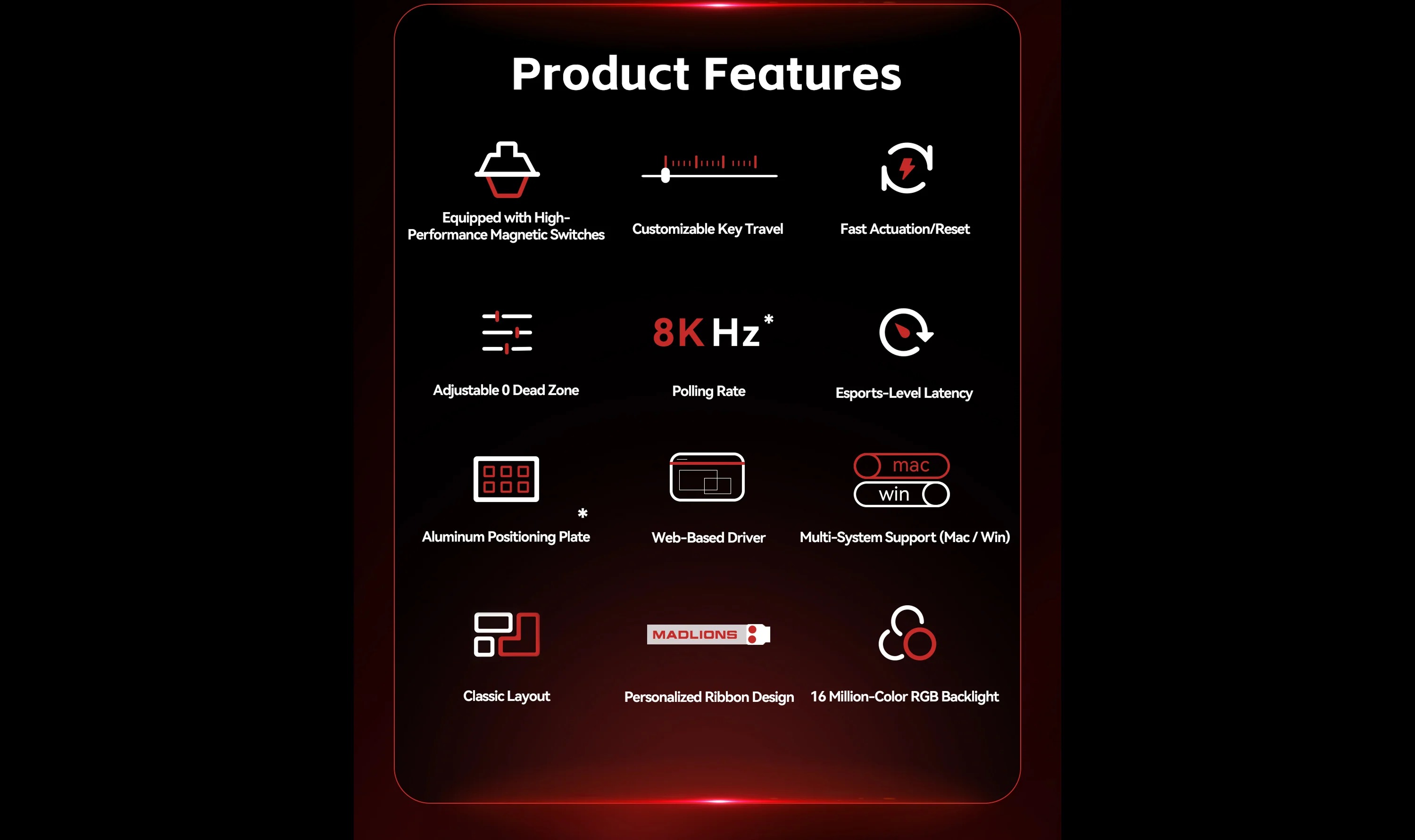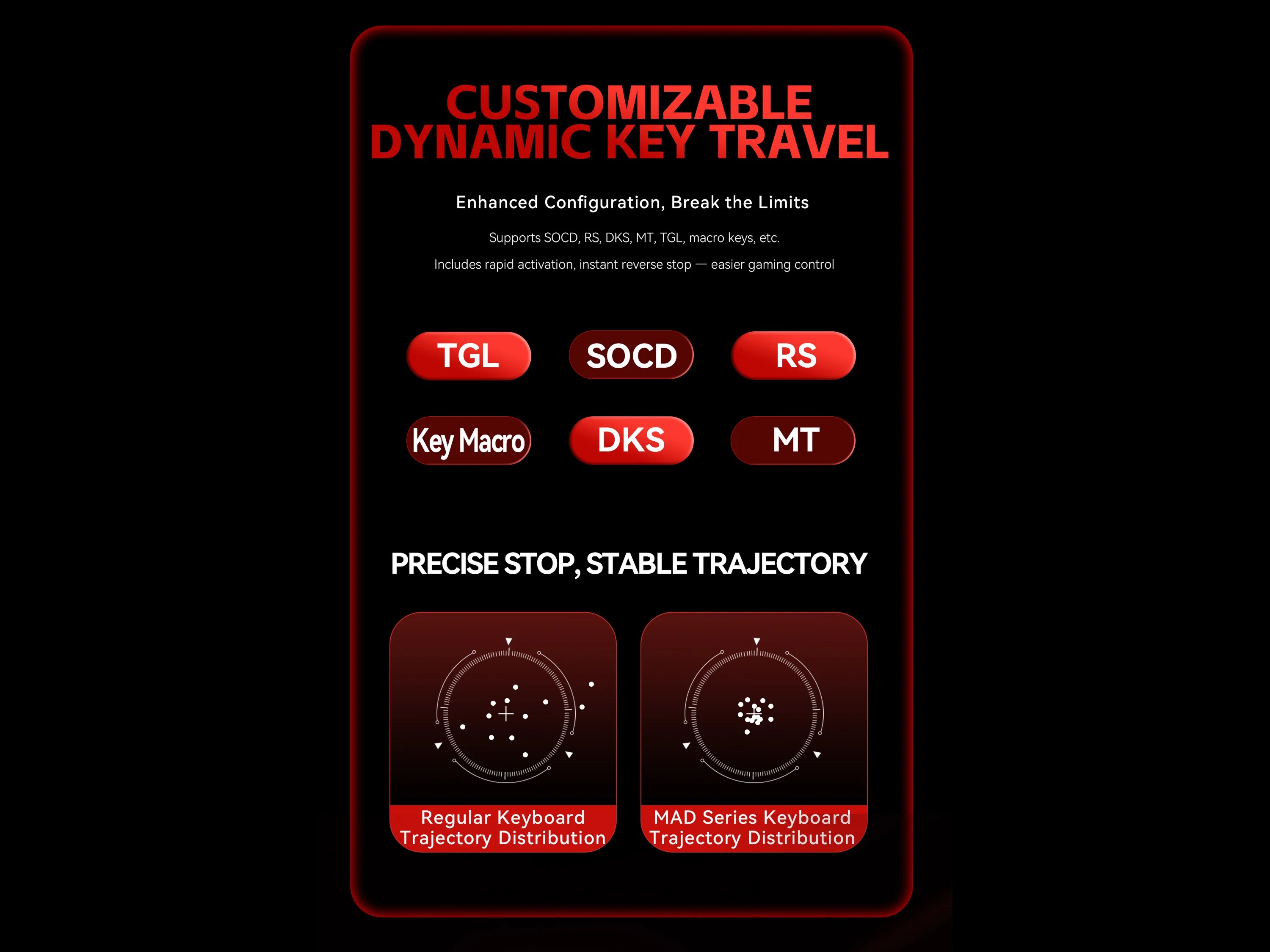 Bàn phím HE có dây FGG MAD68 PRO mang đến hiệu suất đỉnh cao với switch từ tính Gateron Jade, hỗ trợ Rapid Trigger và hành trình phím tùy chỉnh 0.01-3.5mm với độ chính xác 0.02mm. Polling rate 8000Hz và scan rate 128KHz đảm bảo phản hồi gần như tức thì, lý tưởng cho các game FPS như VALORANT, CSGO, và APEX.
