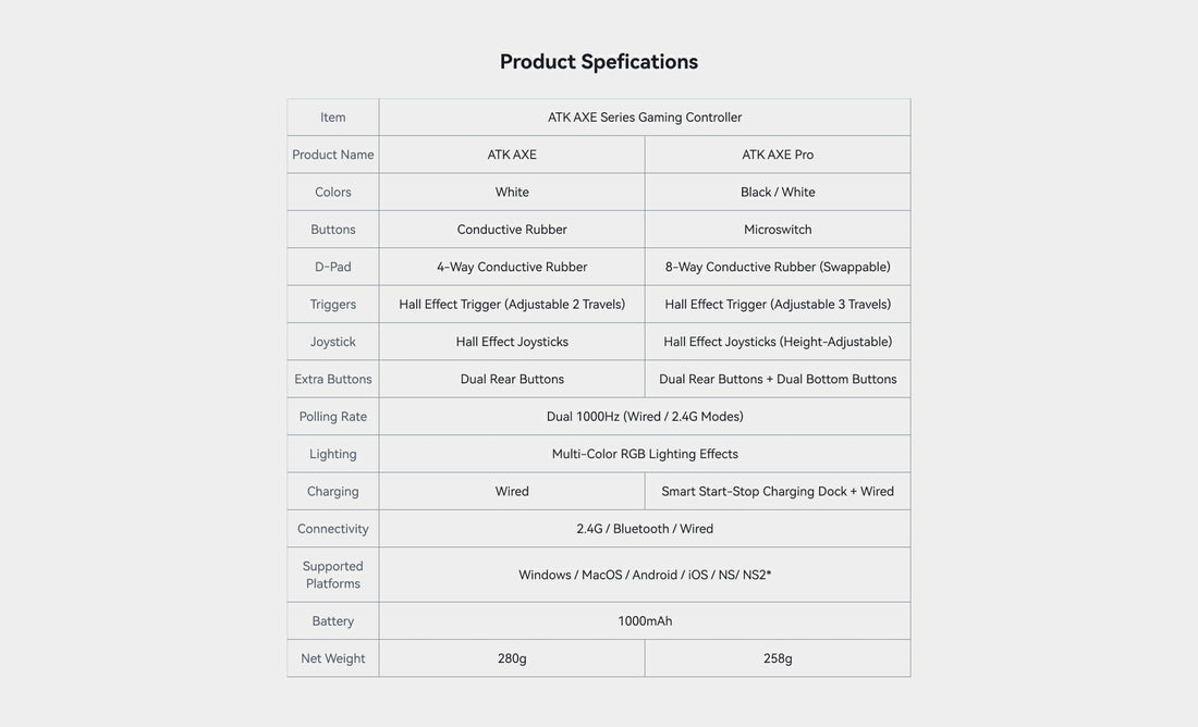 ATK AXE Series tương thích với PC, PlayStation, Xbox, Nintendo Switch, Android, và iOS qua Bluetooth hoặc 2.4GHz. Sản phẩm đi kèm bảo hành 12 tháng, đảm bảo độ tin cậy lâu dài và hiệu suất ổn định.